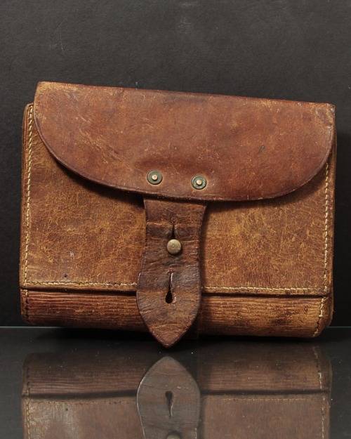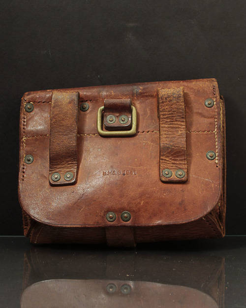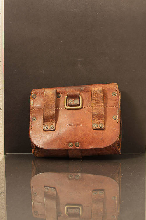 VINTAGE WOLD WAR II (1941) B.H & G LEATHER POUCH WITH BRASS CLIPS AND ATTACHMENTS