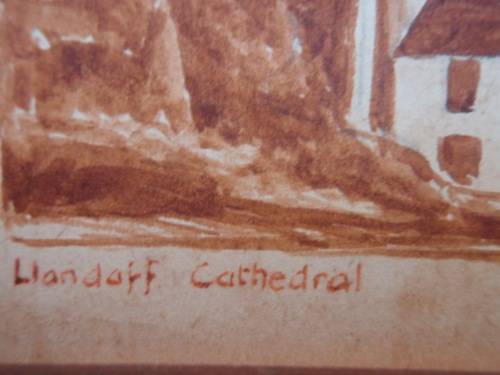 VINTAGE: GORGEOUS LITTLE ORIGINAL by THE LATE LYNDON HOWELLS (WELSH) of LLANDOFF CATHEDRAL. SIGNED BY THE ARTIST. TABLE STANDING FRAME. SIZE: 22CM X 17CM. BEHIND GLASS.
