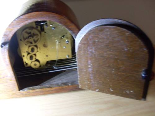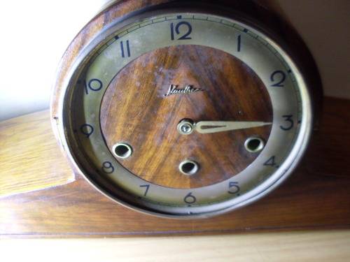 VINTAGE WOODEN MANTLE CLOCK...MAUTHE MADE IN GERMANY...SEE PICS