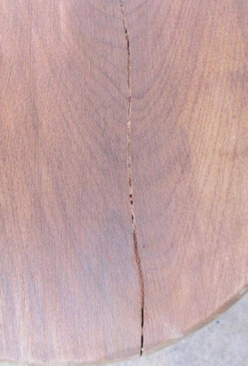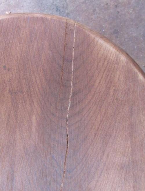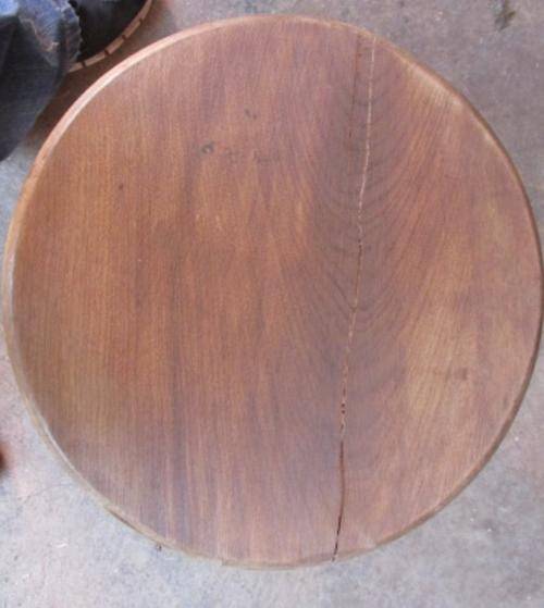 The top is cracked (see pics). Diameter: 30cm. Height: 42cm. Not sure what wood it is