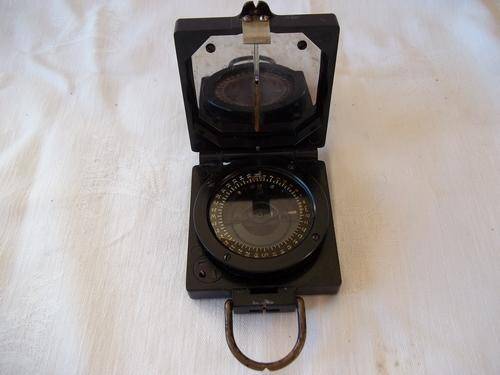 Vintage WW2 T.G. Co. Ltd. field compass. T.G. Co. Ltd was the abbreviation used by The Gramophone Company. This firm merged with Columbia Graphophone Co. and His Master's Voice in 1931 to become EMI (Electrical & Musical Industries) who continued to use “The Gramophone Co.” trademark for various items, changing it for the War contracts to just T. G. Co. Ltd. F. Barker & Son apparently built these compasses since they all carry the B prefix to the serial number. T. G. Co. disappeared as soon as WW2 finished. This company name was probably used to keep secret the manufacturer's real identity. The letter 'B' in the serial number means that this compass was in reality produced by F. BARKER. The compass for sale is still in good working condition, and is numbered B153086. Nice item for the militaria enthusiast.