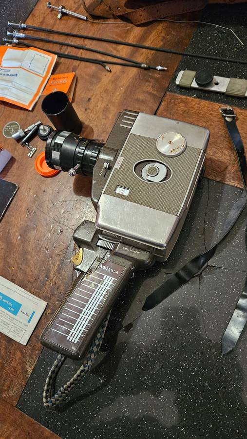 The camera is in a good condition plus some accessories and a manual. The carry bag is damaged. I wound the lever up a bit, pulled the trigger and the mechanics turn.