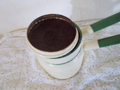 Vintage yellow double boiler enamel pot with rust and wear noted this item would be nice only in display not for use please see condition as per pictures sold as is