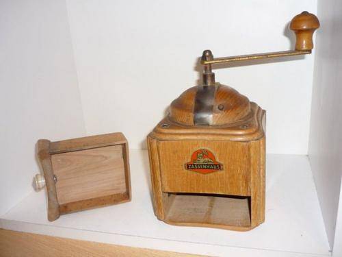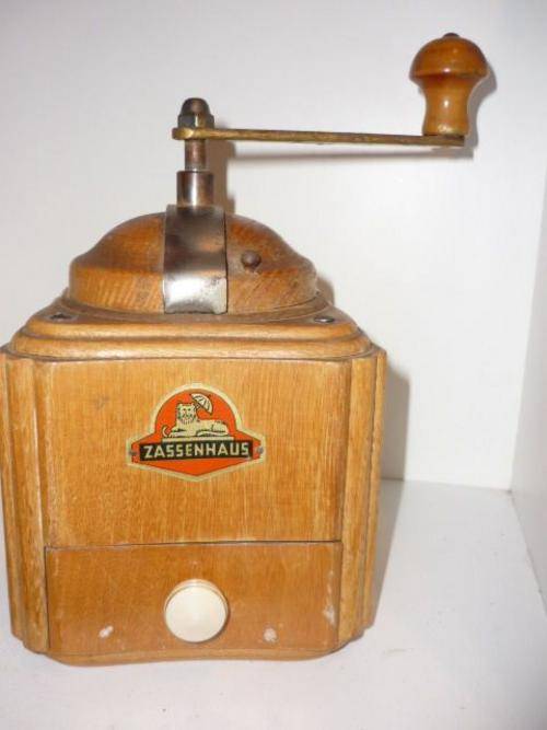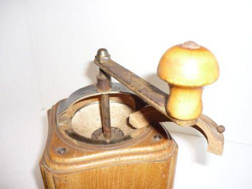 This coffee grinder is probably from the 1950's and the wood looks like Beech.It has a bakelite drawer knob and may have been refurbished at some stage.It stands 21cm tall to the grinding handle,the knob of which is also wooden.A beautifully crafted grinder by one of the great names in this field