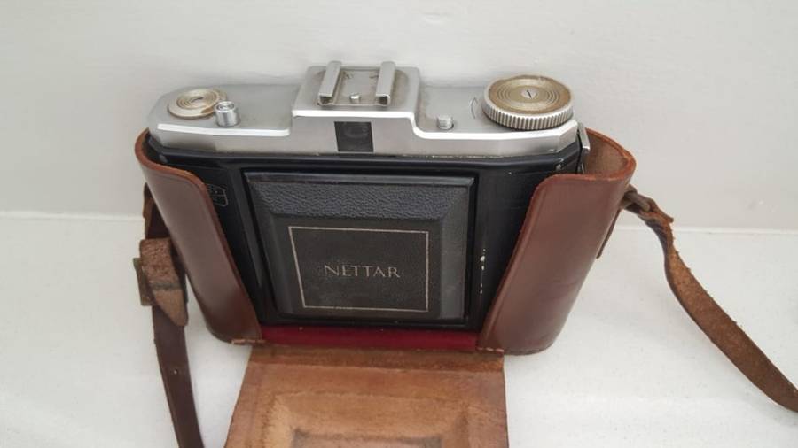VINTAGE ZEISS IKON NETTAR FOLDING CAMERA WITH LEATHER CASE.