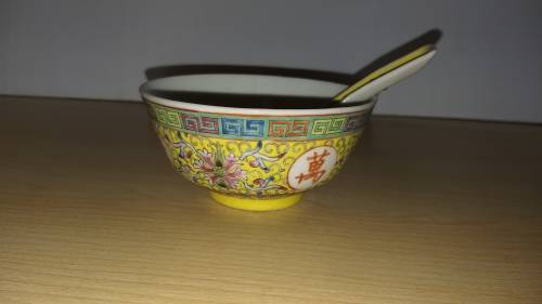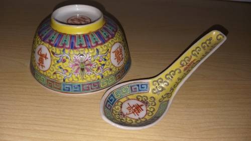 Vintage Zhongguo Jingdezhen Bowl & Spoon. size of bowl: width 11cm. height 5cm