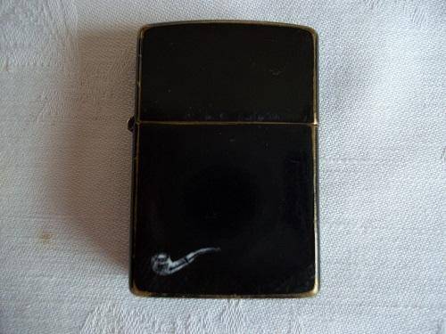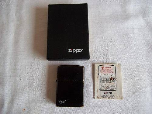 Vintage black ZIPPO lighter with a pipe motif. The lighter has "ZIPPO Bradford, PA, Made in USA and a G and XIII on the bottom". I believe that means that it was manufactured in July 1997. On the insert it has "For best results use ZIPPO flints and fluid" and "ZIPPO MFG Co, Bradford, PA, Made in USA and L and IX". It is in fair used condition for its age, but needs fuel - lighter sparks. It is in a box with the guarantee.