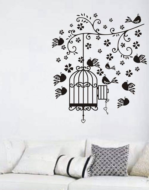 VINYL DECAL-BIRD CAGE AND FLOWERS