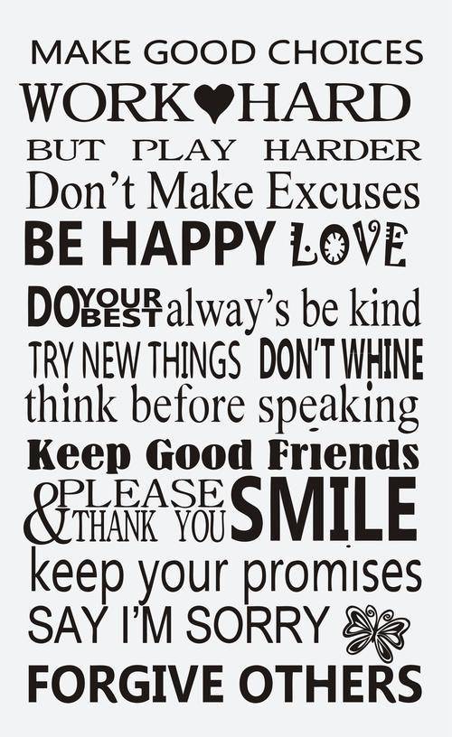 VINYL DECAL - WORDS TO LIVE BY. COMES IN ALMOST ANY COLOUR ASWELL AS SILVER AND GOLD.
