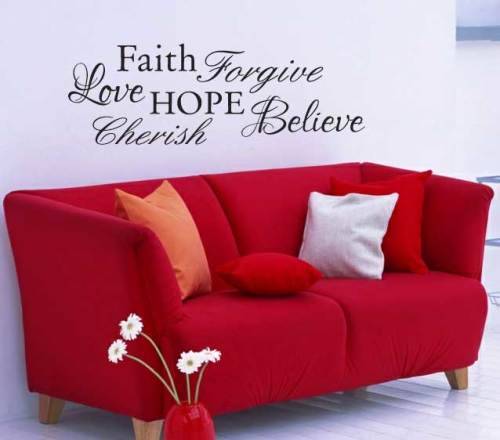 6 Vinyl words approx 30cm wide each, place them where you like. Other colours are available upon request.