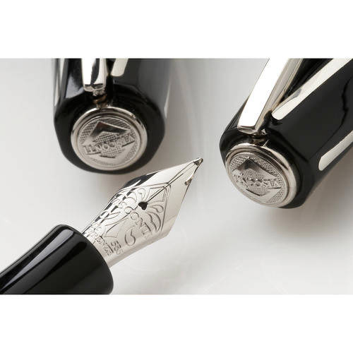 It has a solid 14k gold nib in medium point. This is the large oversize pen. It comes with own box and papers. Not the limited edition version.