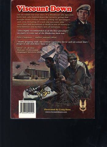 Viscount Down, the complete story of the Rhodesian Viscount disasters as told by a SAS operator, By Keith Nell, Published by the Author, revised edition, name and date inscription, illustrated, some wear and bend marks on the end of cover and some pages, good condition, 485 pages.