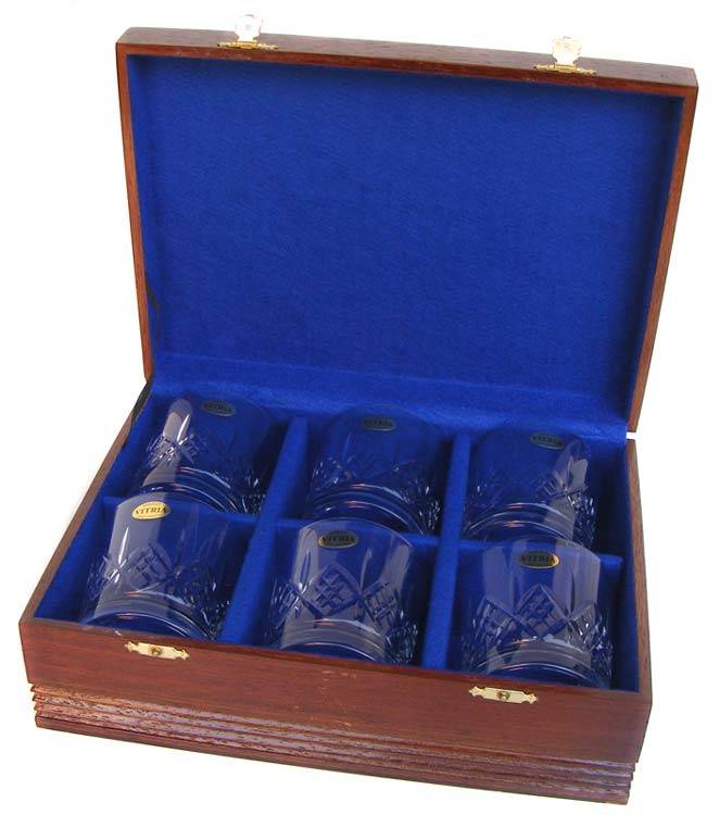 VITRIA Hand Cut Lead Crystal 6 Whiskey Glass set in wooden box - Unused