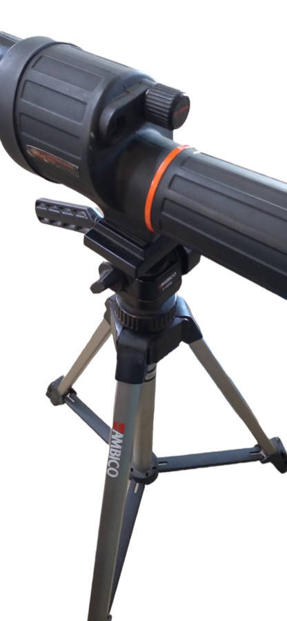 The scope comes with a Ambico V-0555 tripod, also in good used condition. Unfolded with the legs not extended it measures at 51.7cm in height.