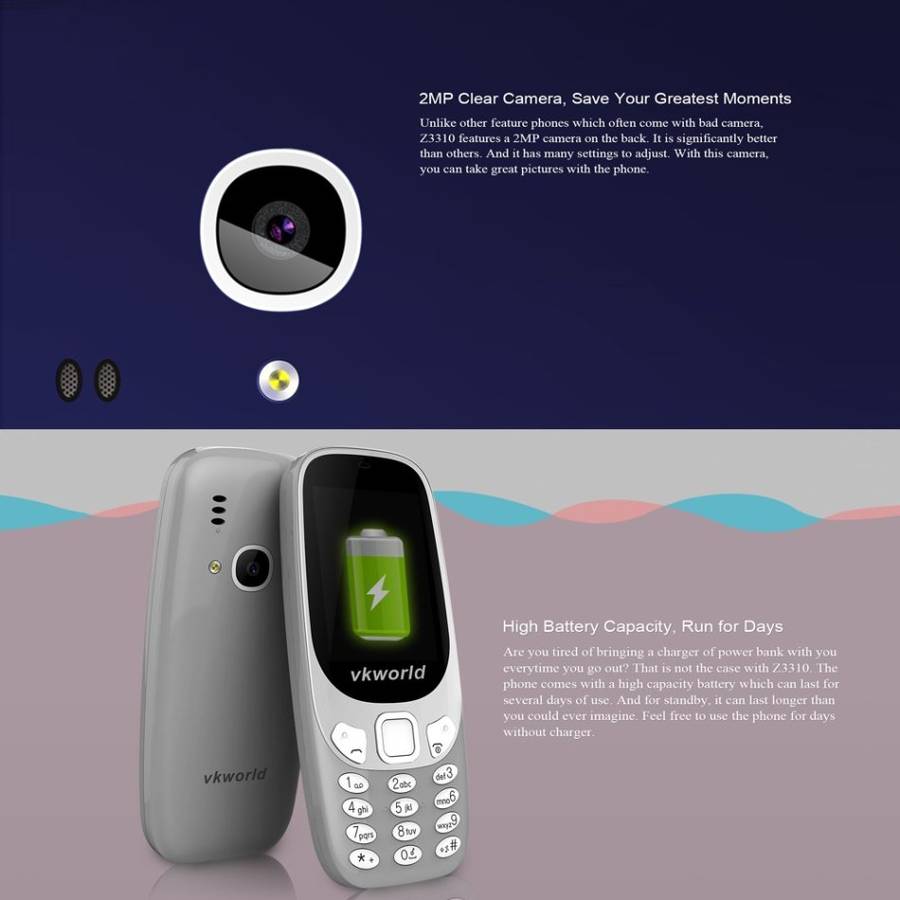 VKworld Z3310 Feature Phone 2.4 Inches 3D screen Amplified Phone speaker