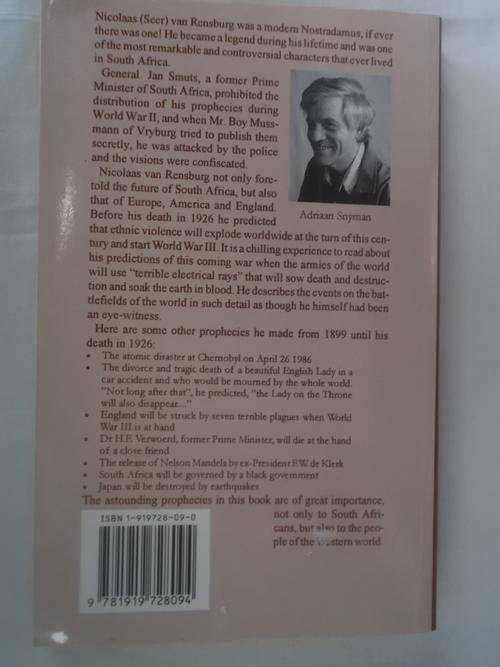 Nicolaas (Seer) van Rensburg was a modern Nostradamus, if ever there was one. He became a legend during his lifetime and became one of the most remarkable and controversial characters that ever lived in South Africa.