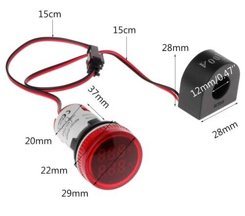 Voltmeter Ammeter AC 220V 100A 22mm: