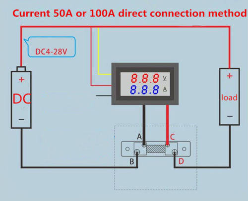Voltmeter/ Ammeter DC 0-100V/100A Dual LED Display 3 Digit (Red & Blue):