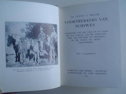 Geskiedenis van die land en sy volke, met hul oorloe; van die Dorslandtrek; die Smit-trek, trek uit Piketberg en die Britse en Duitse veroweringe. Oorsigsketskaart agterin. 1941 eerste uitgawe hardeband met 390 bladsye in baie mooi toestand. R50 posgeld in SA. SWA, Suidwes-Afrika, Namibia, South West Africa. Witbooi, Herero, Ovampoland, Angola, Bondelswarts, Rebellie.....