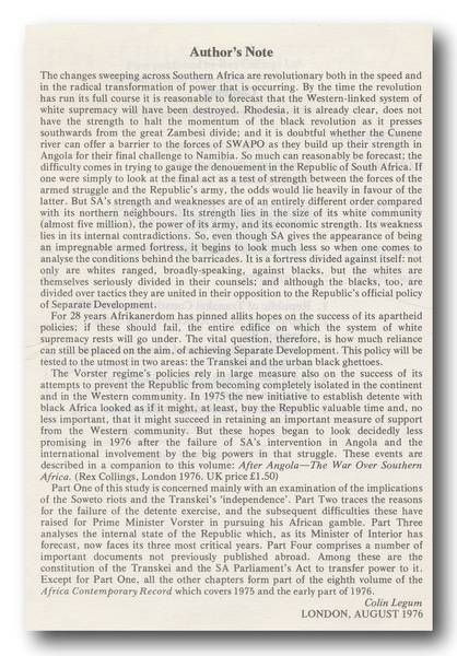 Vorster's Gamble for Africa by Colin Legum (1976)