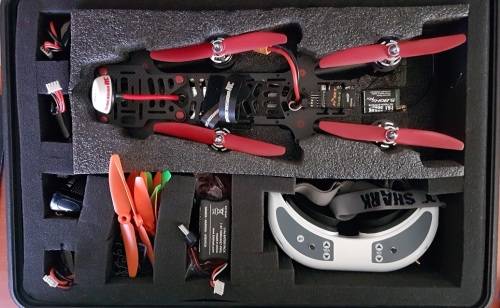 This includes the Fat shark HD Dominator head set with head tracking control.(you can not use the head tracking with this vortex drone, The head tracking was for other applications). Has some minor scratches were you have to open the bay doors to put in video receiver (included 5.8 ghz and head tracking unit.)