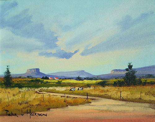 Pieter van Heerden was born and raised in Gauteng, South Africa. After Military service and further studies in theology, the longing to become an artist was so strong that he decided to attend private art classes. Since 1996 art has become his passion and he enjoys doing art in different themes. Success has not come easy to Pieter but he now has paintings in private collections in Europe, America and Australia, as well as South Africa of course. His clear direct approach, with an element of the surreal, has a modern and uncomplicated appeal.