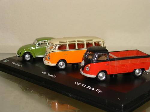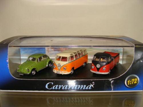 VW Set of Beetle, Samba & T1 Pick Up ,Scale : 1/72, Die Cast, New in Box, by Cararama