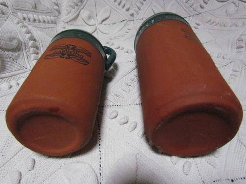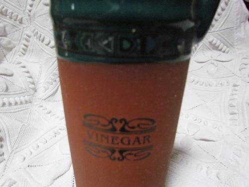 W O W !!! A LOVELY SALAD DRESSING AND VINEGAR BOTTLE IN GREEN AND TERRACOTTA!!!