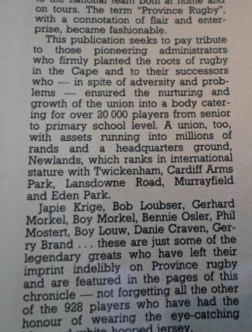 WP RUGBY , WESTERN PROVINCE RUGBY , NEWLANDS , NUWELAND , RUGBY BOOKS , RUGBY BOEKE
