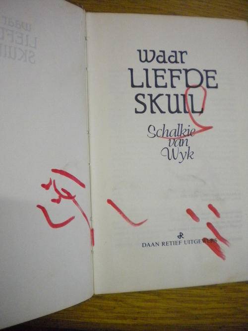 Waar liefde skuil deur Schalkie van Wyk, 1981. 136 Bladsye. Hardeband sonder stofomslag.Boek het 'n paar "koki" merke in (Sien foto's). Onder 1kg.