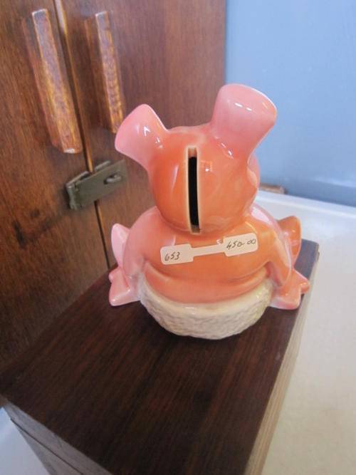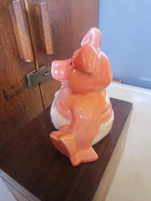 Cute Wade piggy bank, made in England, these piggy banks come either dressed or undressed, this little guy just has a nappy with a huge napkin pin too cute. In immaculate clean condition, unfortunately the wade sticker has come off. 15cms L, 15cms H and 10cms W, postage 65.00.
