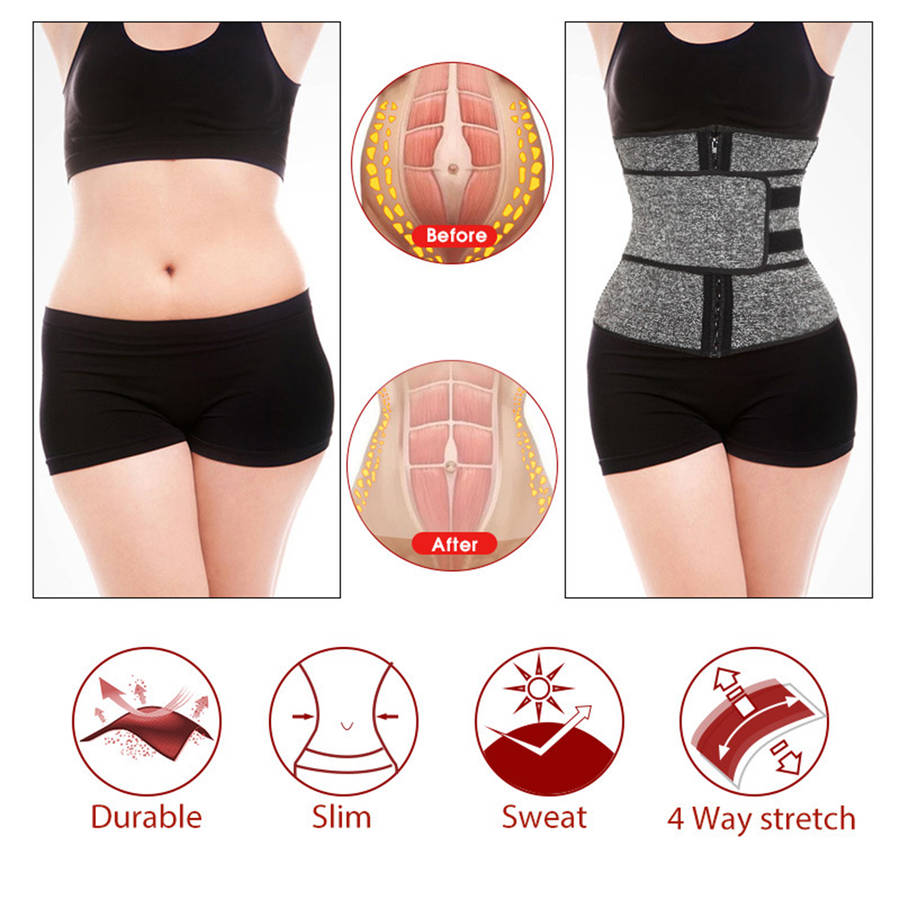 -Brand New Special Design -The abdomen double-layer compression design makes the abdomen effect more obvious. Belt + zipper combination design, and sticky adhesive. Easy to adjust the size. Built-in 9 STEEL BONES, support shaping effect is powerful and effective. Give you a perfect waist trimmer + waist trainer.