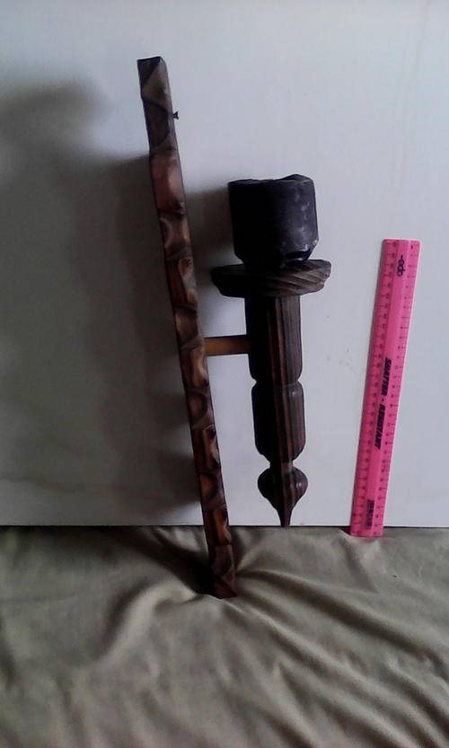 Wooden candle holder, nice and big.  Can be attached to wall. Candle not included.
