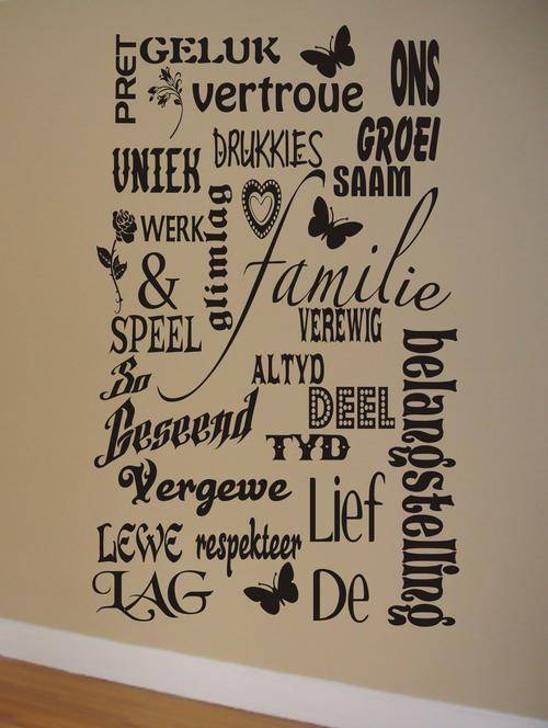 VINYL DECAL - FAMILIE LIEFDE. COMES IN ALMOST ANY COLOUR. SIZE APPROX 575MM X 1000MM