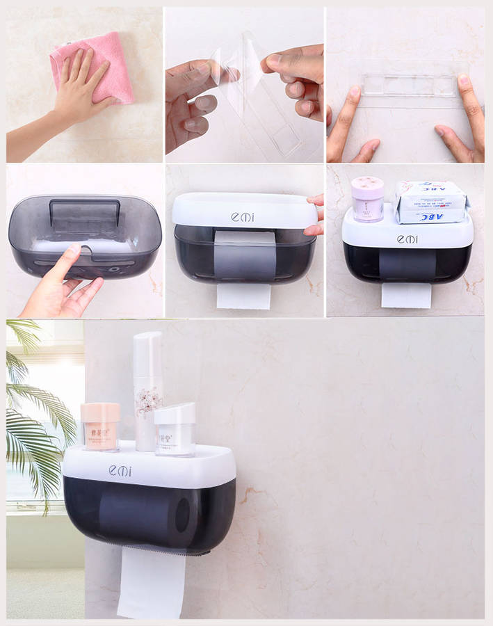 Package weight: 0.36 kgDescription:Wall-mounted Suction Tissue Dispenser Napkin Holder Box Paper Tray Roll Waterproof Toilet Paper Shelf Holder Bathroom