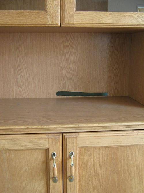 Fair condition. Scratches where the television would go. Slot cut for decoder/dvd cables etc.