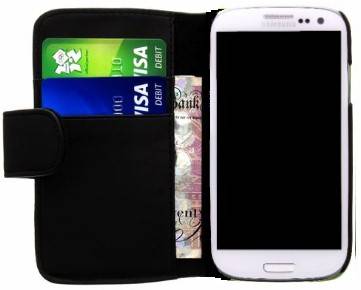 Wallet Flip Case for Samsung Galaxy S3 i9300 (Black/Brown) + Screen Protector + Stylus