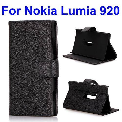 Wallet Stand Case For Nokia Lumia 920 (Black) + FREE SCREEN GUARD