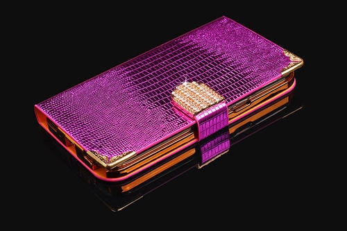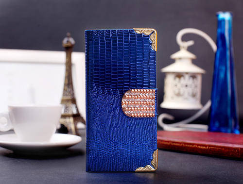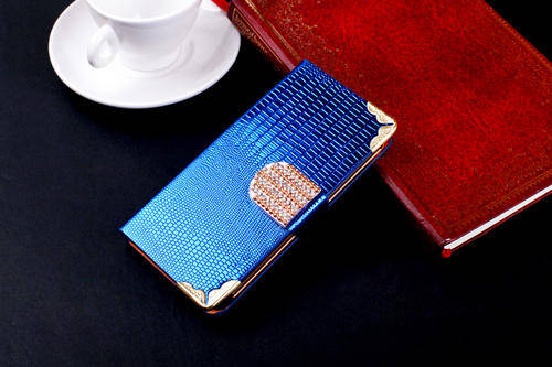 Wallet Style Cellphone Case Cover With Crystal Buckle For Samsung Galaxy S4 I9500 - Blue