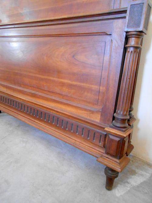 Walnut bed and nightstand Origin: France circa 1880.