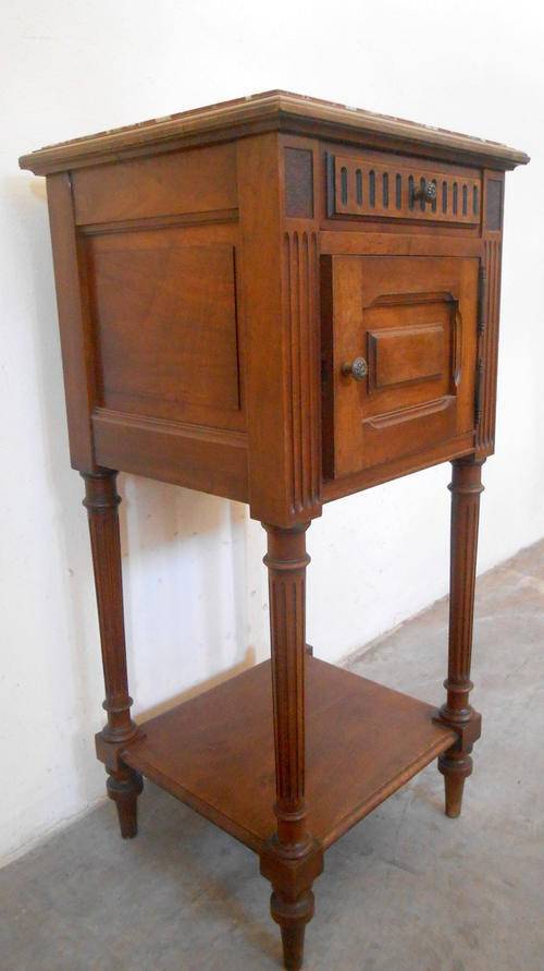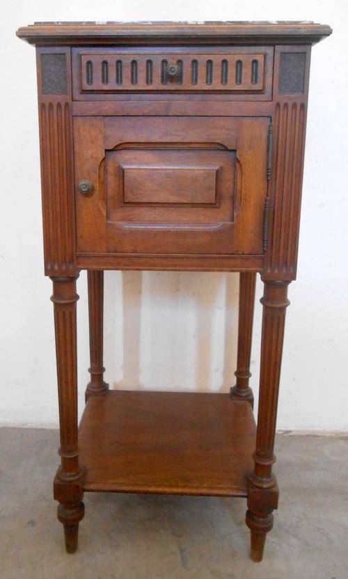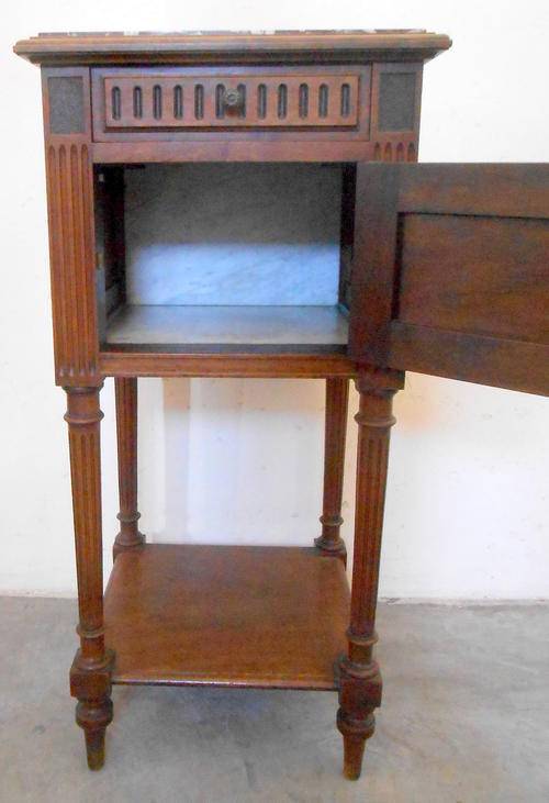 In very good condition, the nightstand has original marble on and marble in the inside.