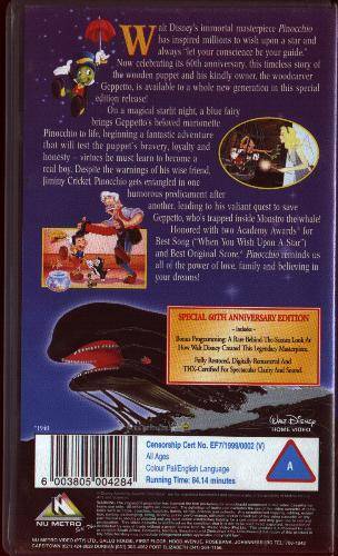 WALT DISNEY - Pinocchio VHS VIDEO (60th Anniversary Edition)