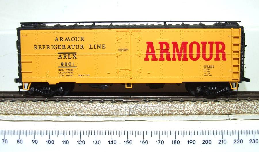 This reefer car is up for auction in new condition. It has double bogie hook horn couplings and plastic/metal wheel sets installed. No surface corrosion on the metal parts. The paint job is in new condition. I believe this model to be complete. You can have it for a fraction of the original price if you can use it. Since it is included in the description, please refer to the photos for more information. Email me with any questions.