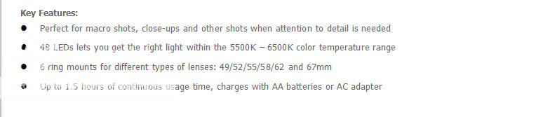 Canon: EF60 F/2.8 USM Micro EF100 F/2.8USM Micro EF100 F/2.8L IS USM Micro EF180/3.5L USM Micro