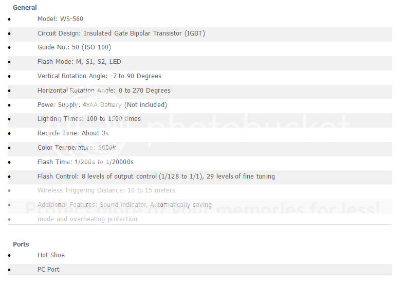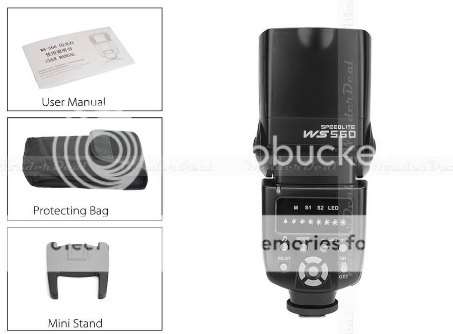 WANSEN WS 560 Flash Speedlite - For Canon, Nikon + Pentax, GN 50 (ISO 100), IGBT, Color Temp 5600k