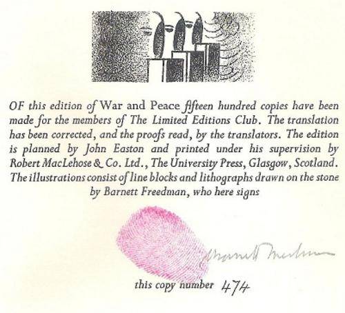 Light Browning/Foxing To The Pages. Signed To Back Of 6th Volume by illustrator Barnett Freedman. His thumbprint appears there also tho unable to ascertain if this is original or printed with the book