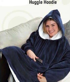 The Huggle Hoodie is the most comfortable oversized hooded sweatshirt that keeps you totally snug and warm. Made of the softest, most luxurious blanket fabric and lined with the ultimate in warming, comfort. The amazingly comfortable Huggle Hoodie combines the warmth of a cozy blanket with the comfort of your favorite hoodie. It's made of ultra-soft fleece on the outside and plush Sherpa material on the inside. Features an extra - large hood to keep your head warm and snug and a big roomy pocket to keep what you need right at hand.