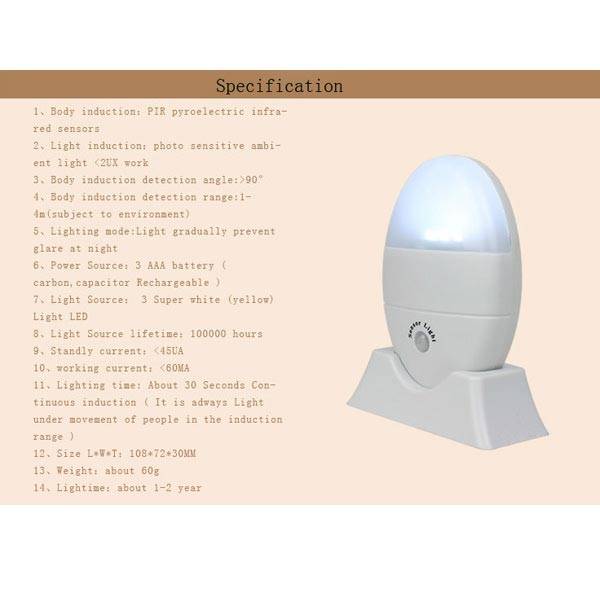 Warsun WS-002 3 LEDs Auto Motion Sensor Light Six Colors