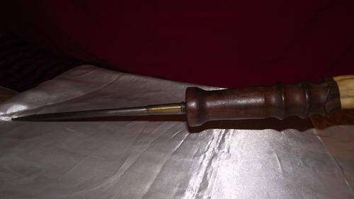 The Sword Cane is approximately 90CM overall. It features exceptional fit and finish and has a concealed trigger mechanism that you simply pull towards you to release the blade. A matching exotic wood spacer conceals the trigger. The spacer is consistent with the other design elements, so only you will know it is there. The three edged, stainless steel, 23CM long Push dagger has a razor sharp tip.
