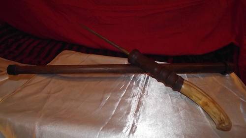 WARTHOG TUSK AND TAMBUTI WOOD, SWORD WALKING STICK WELL CRAFTED AND BEAUTIFULLY SELLING PRICE $ 450